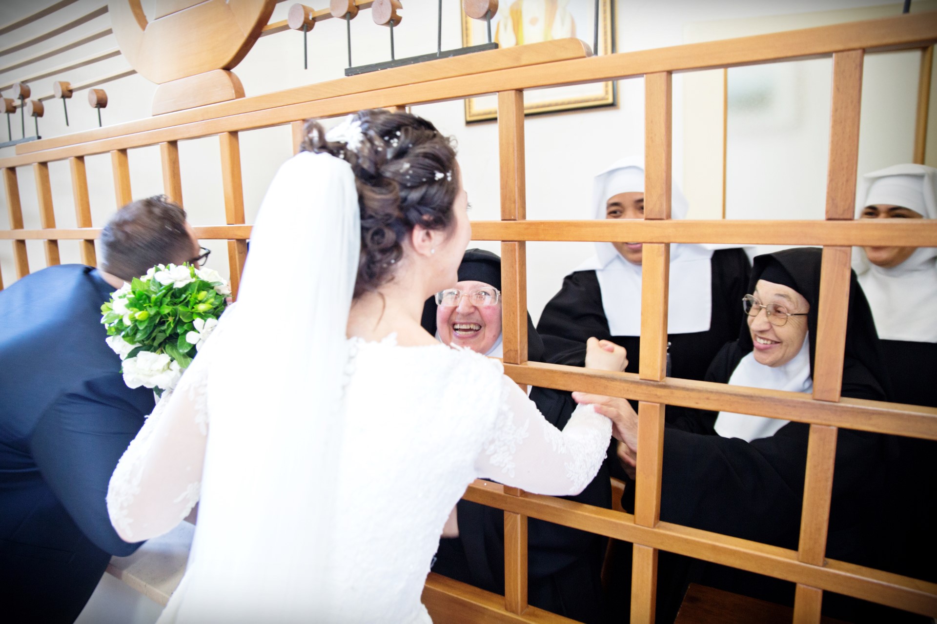Cesare e Rosalia hanno scelto la cattedrale di San Pelino a Corfinio, un convento con le suore di clausura dove siamo riusciti a rubare anche uno scatto durante il saluto delle monache a fine cerimonia. Un legame profondo che ci ha emozionato profondamente.