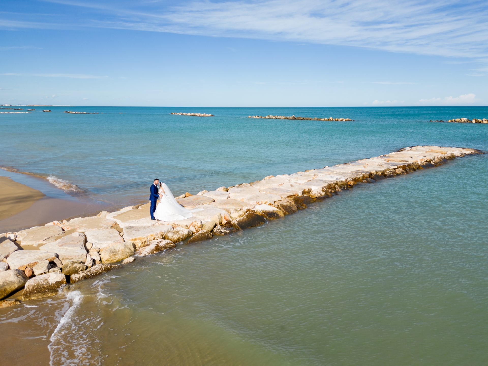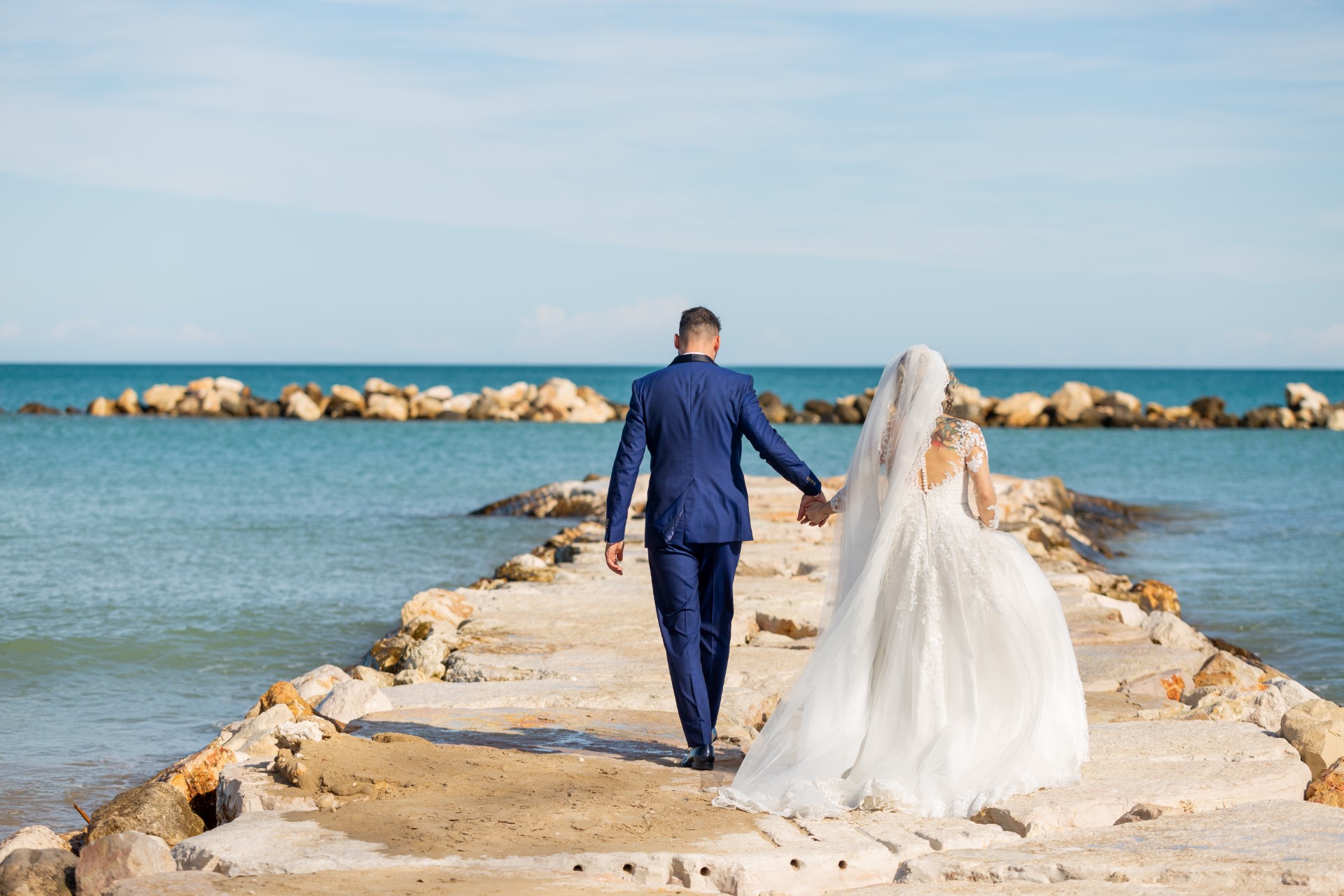 Per il loro matrimonio hanno scelto un giorno più che autunnale, ma che ha regalato temperature quasi estive e tempo sereno, tanto da poterci concedere alcuni minuti di divertimento in riva al mare.